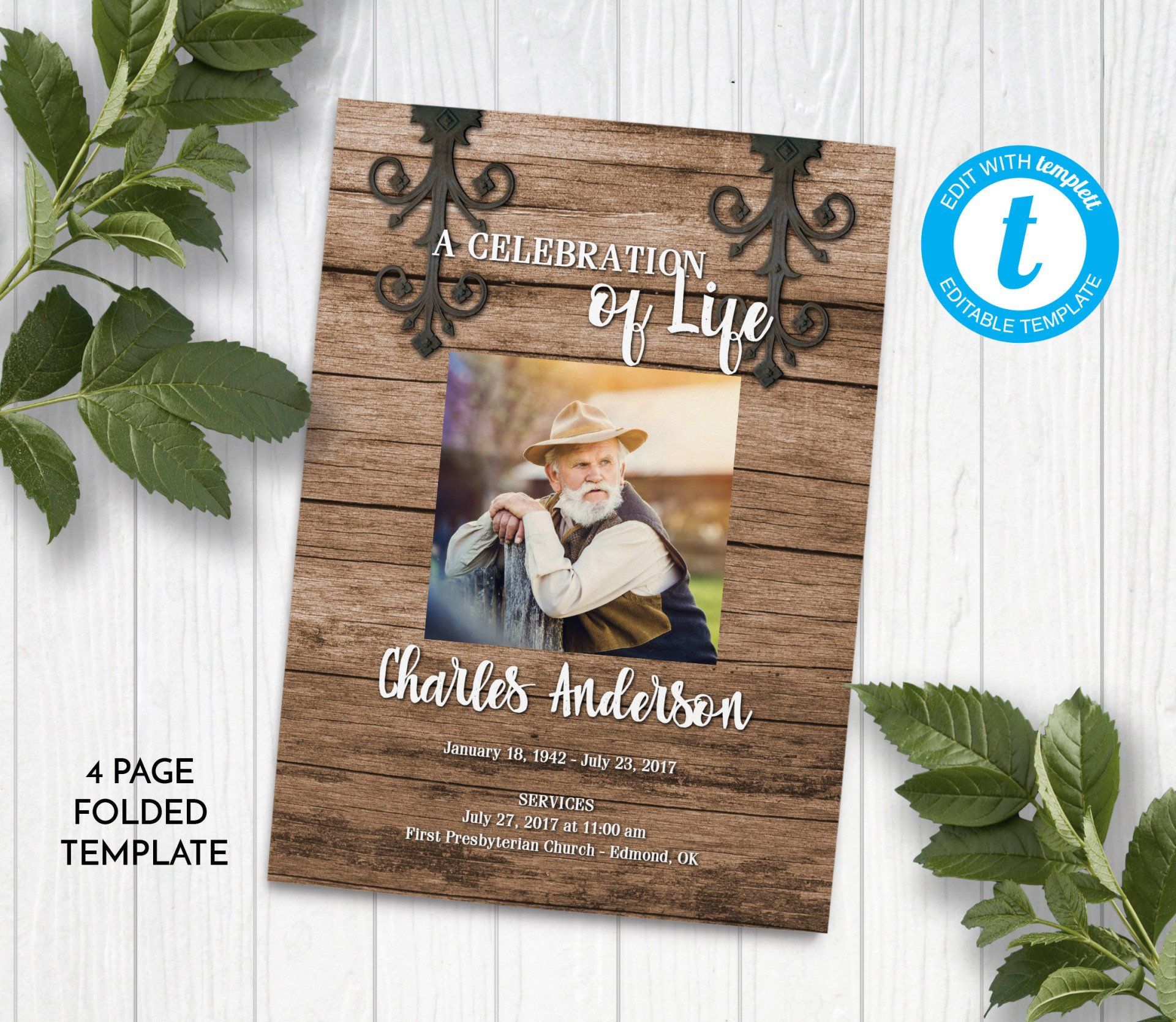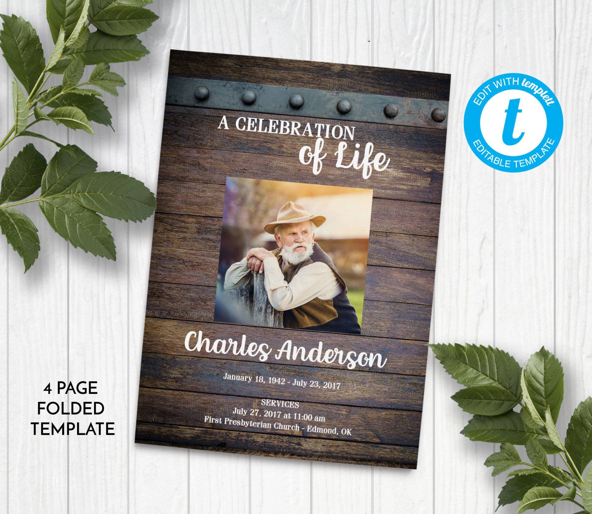Rustic Wood Funeral Program