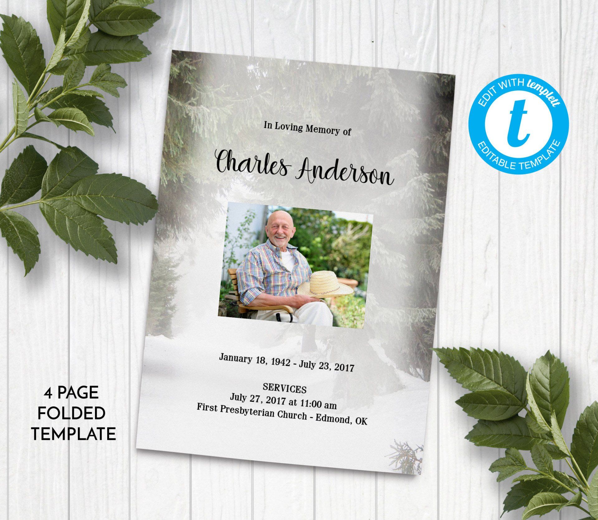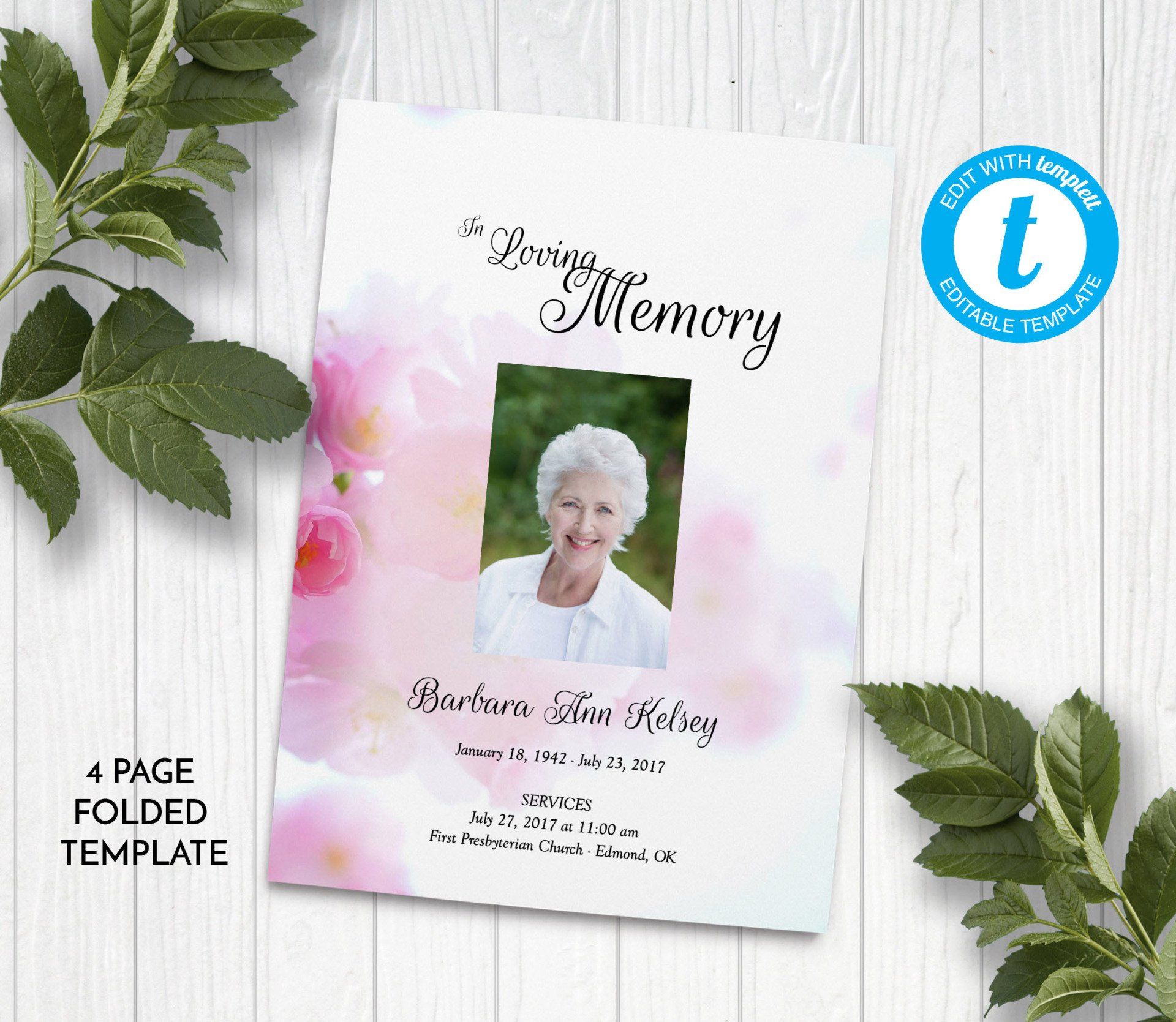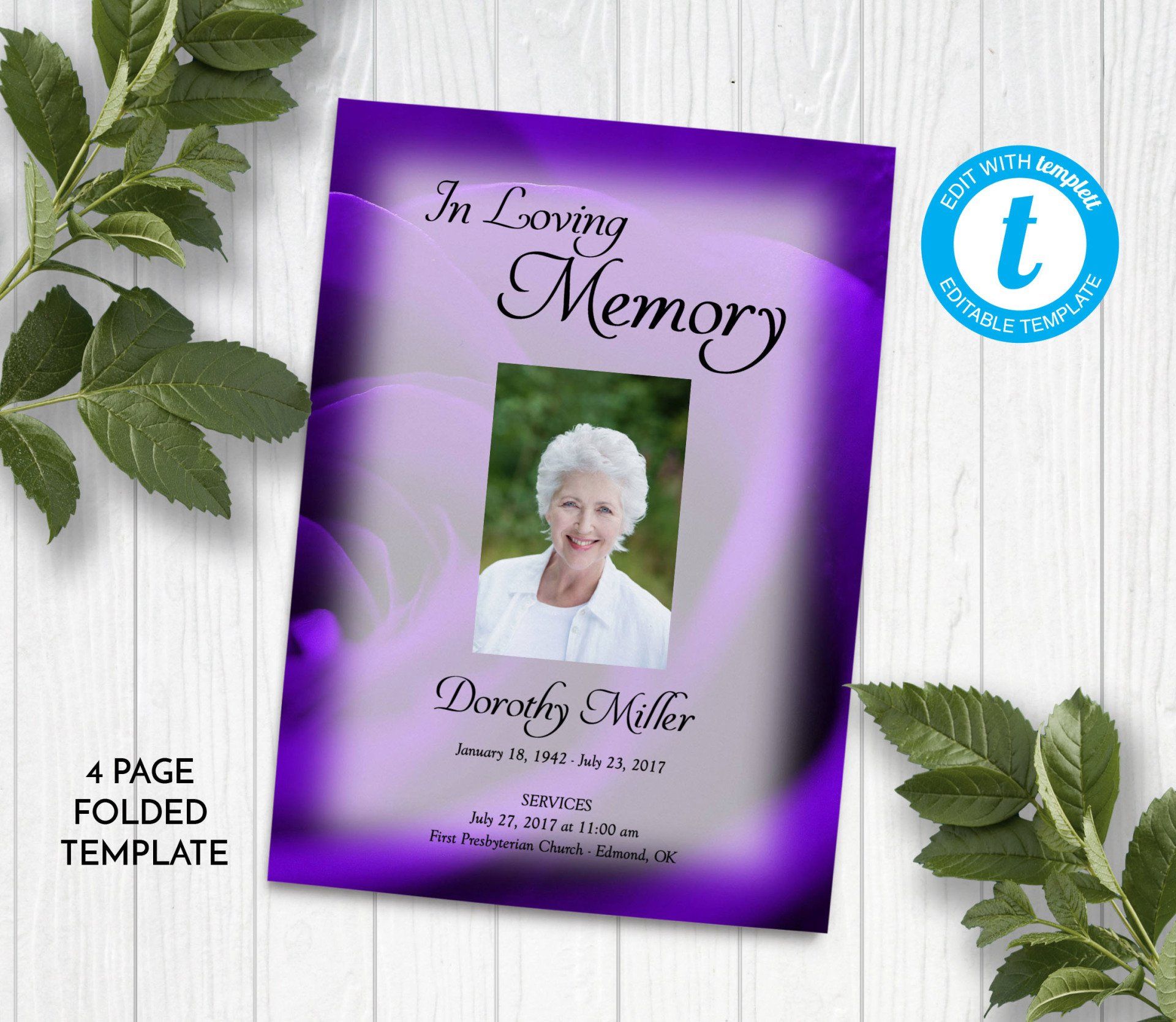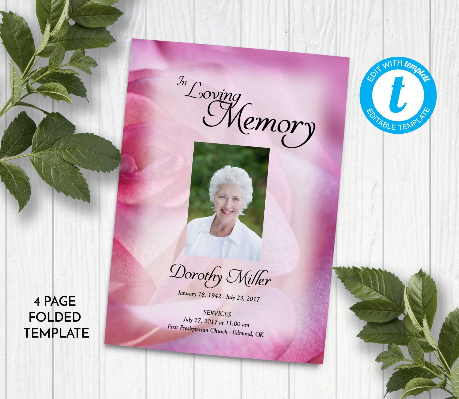 Includes 3 layouts. Design also comes as Memory Keepsake Program with Obituary/Order of Service Insert.