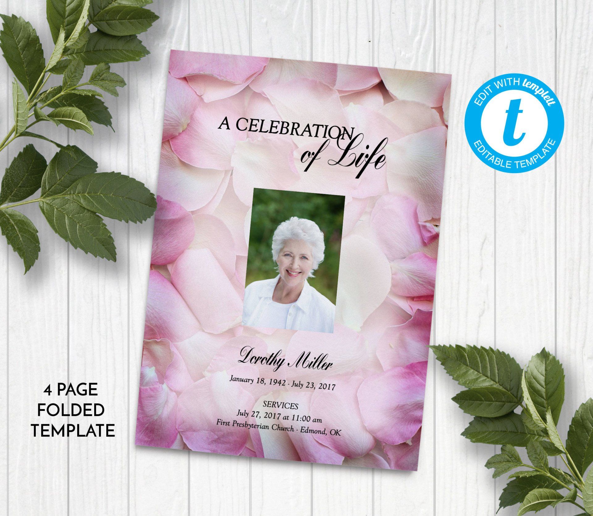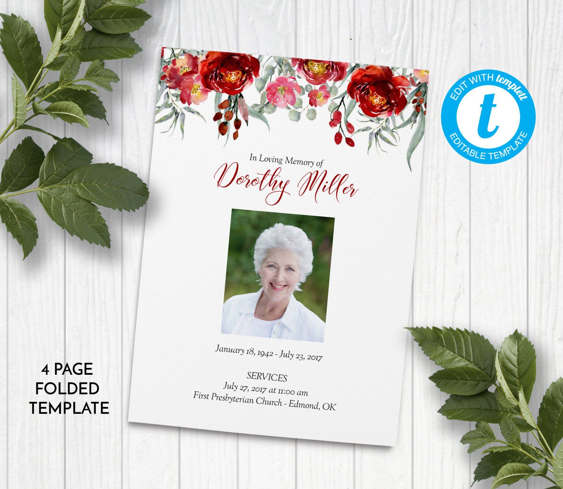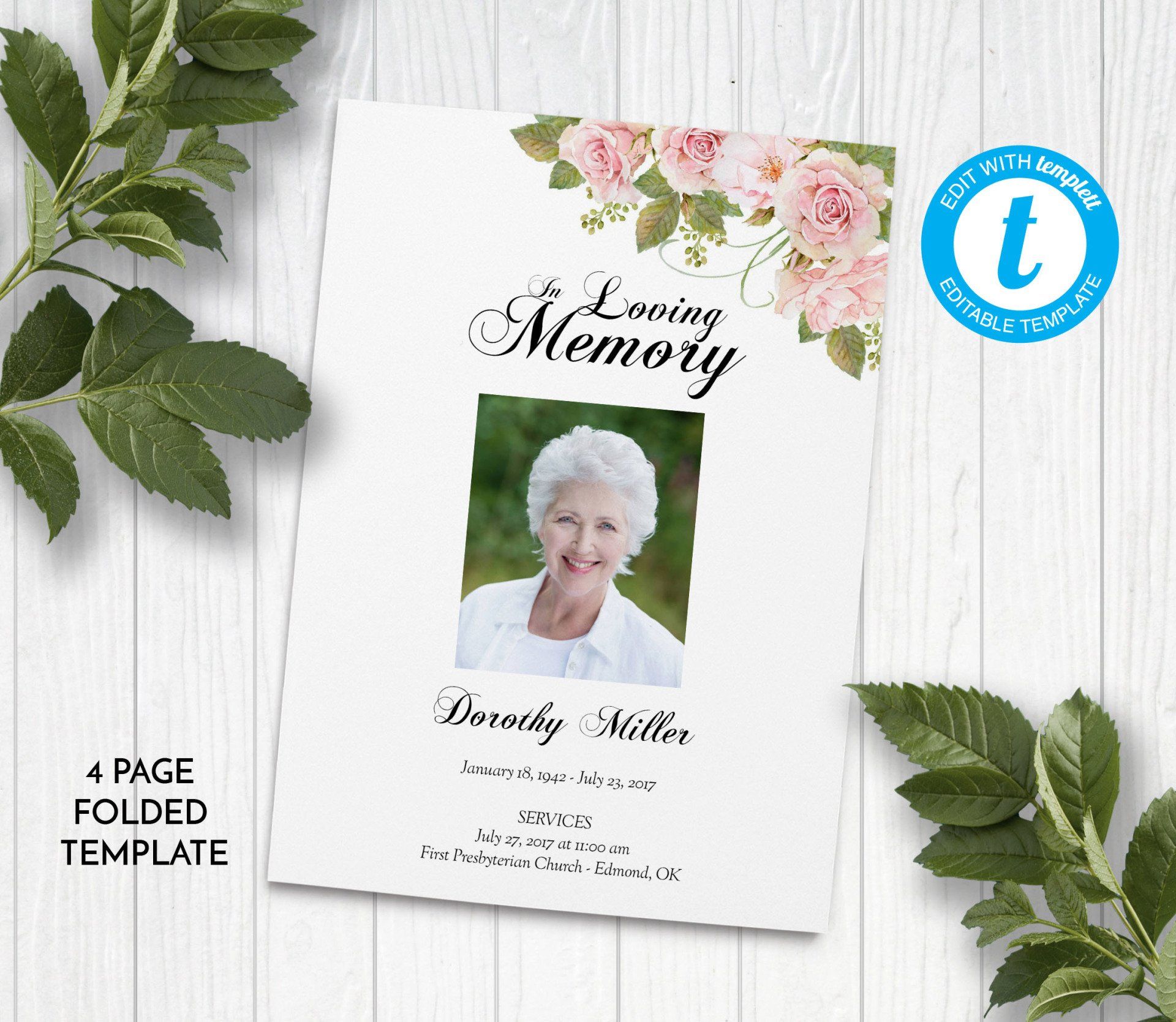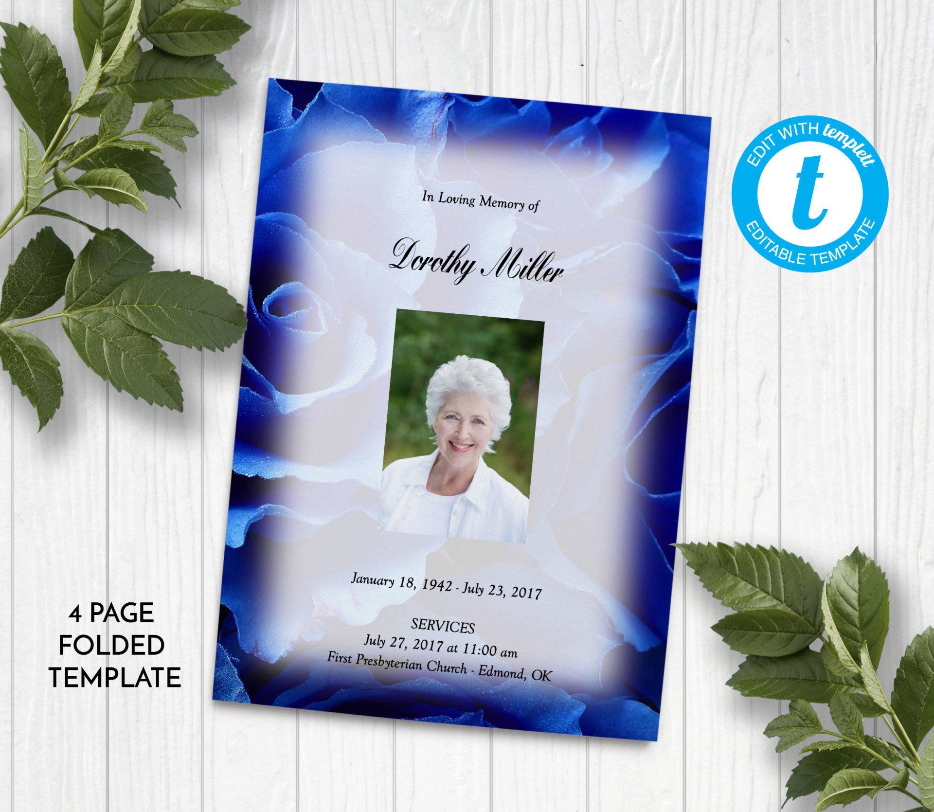 Includes 3 layouts. Design also comes as Memory Keepsake Program with Obituary/Order of Service Insert.