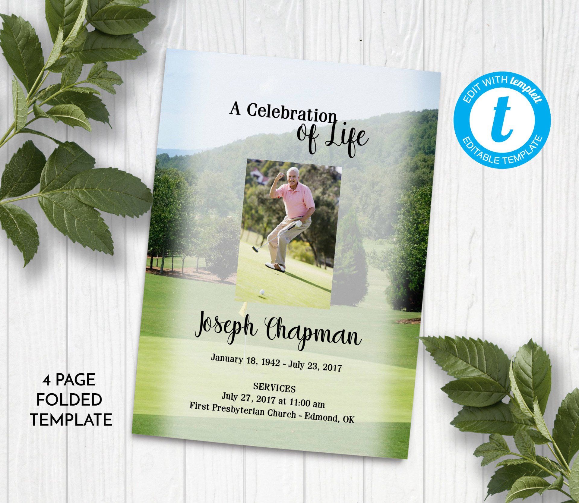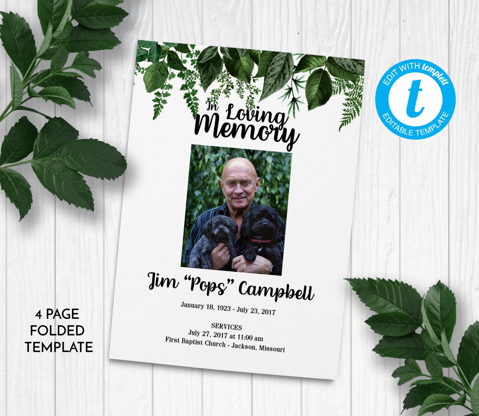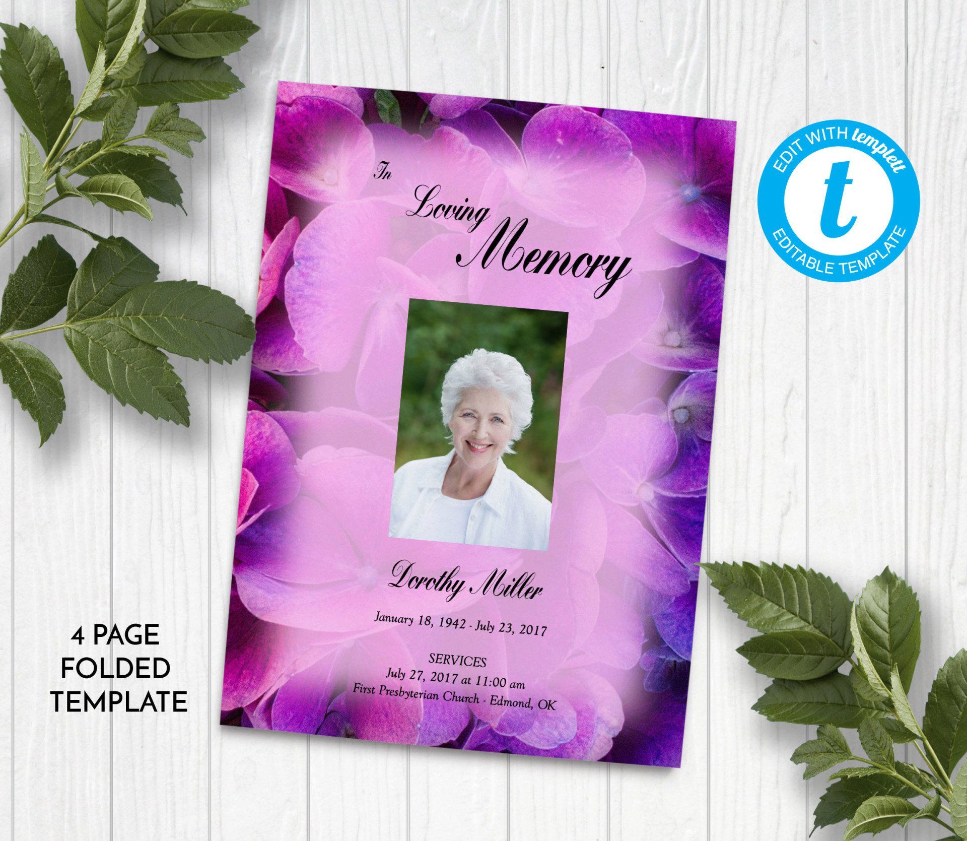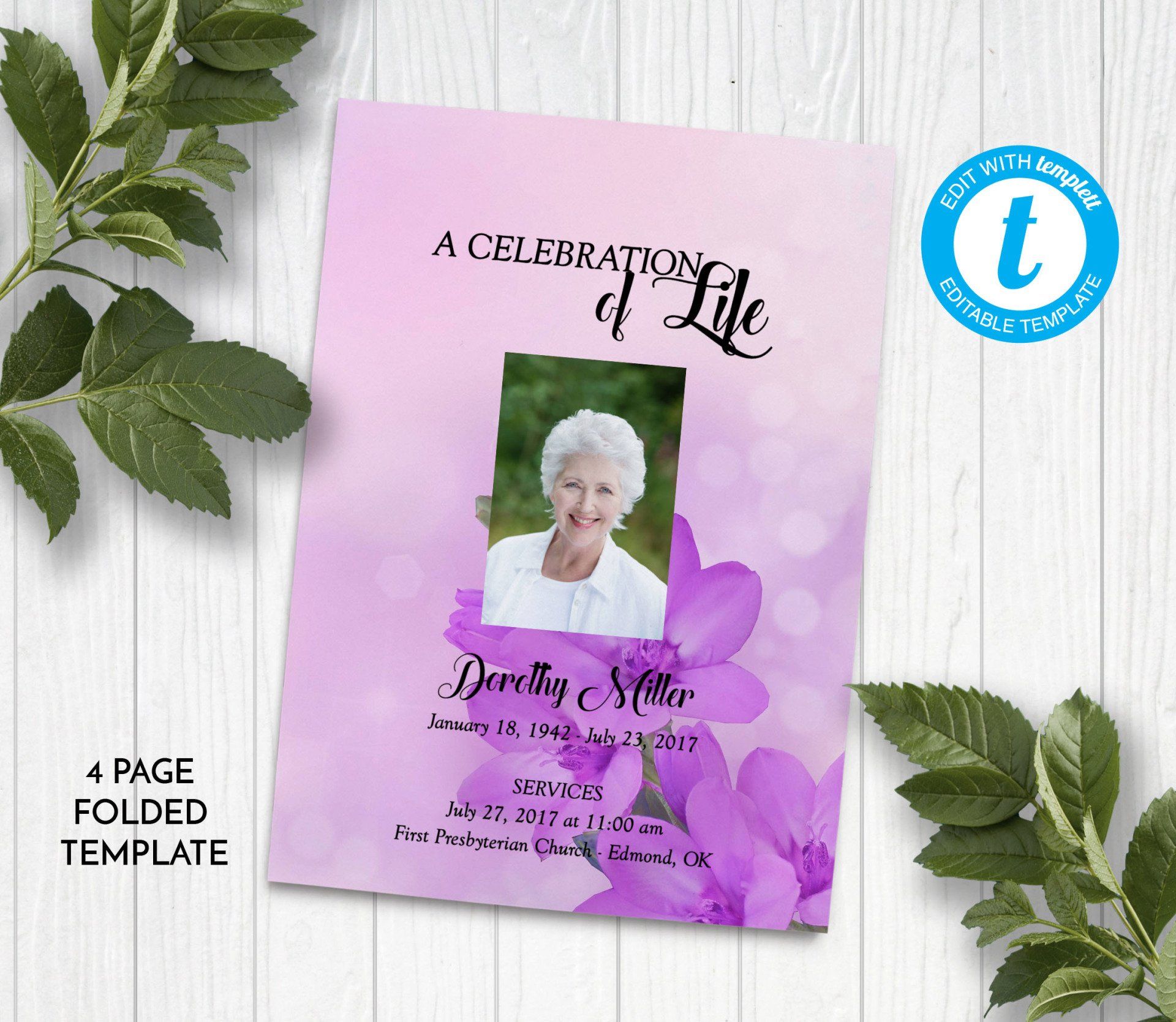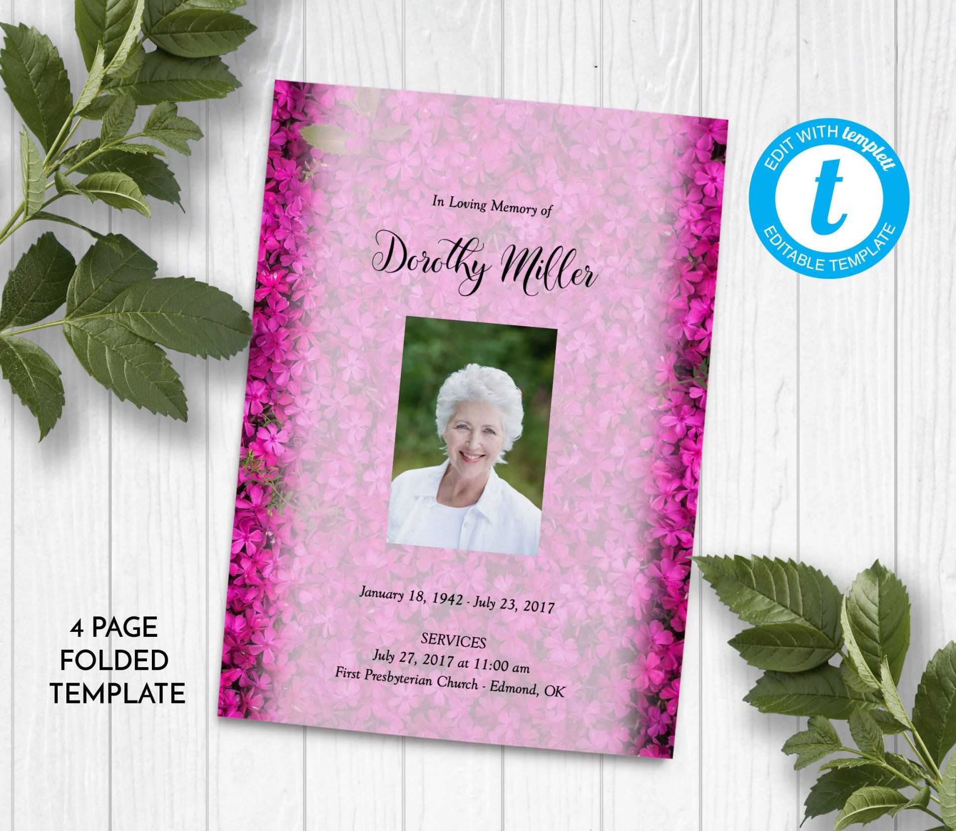 Includes 3 layouts. Design also comes as Memory Keepsake Program with Obituary/Order of Service Insert.