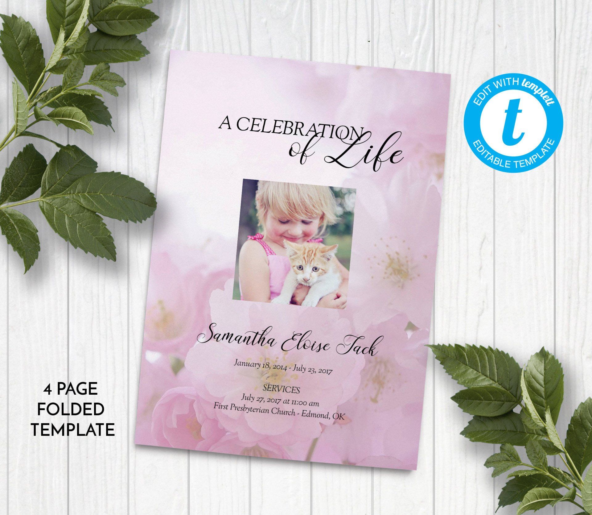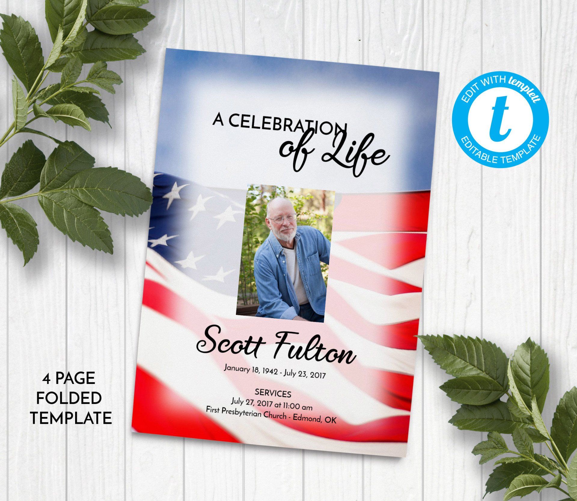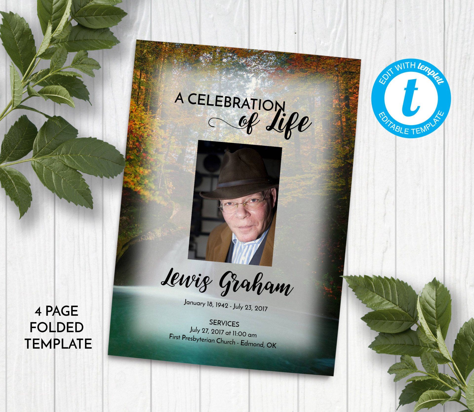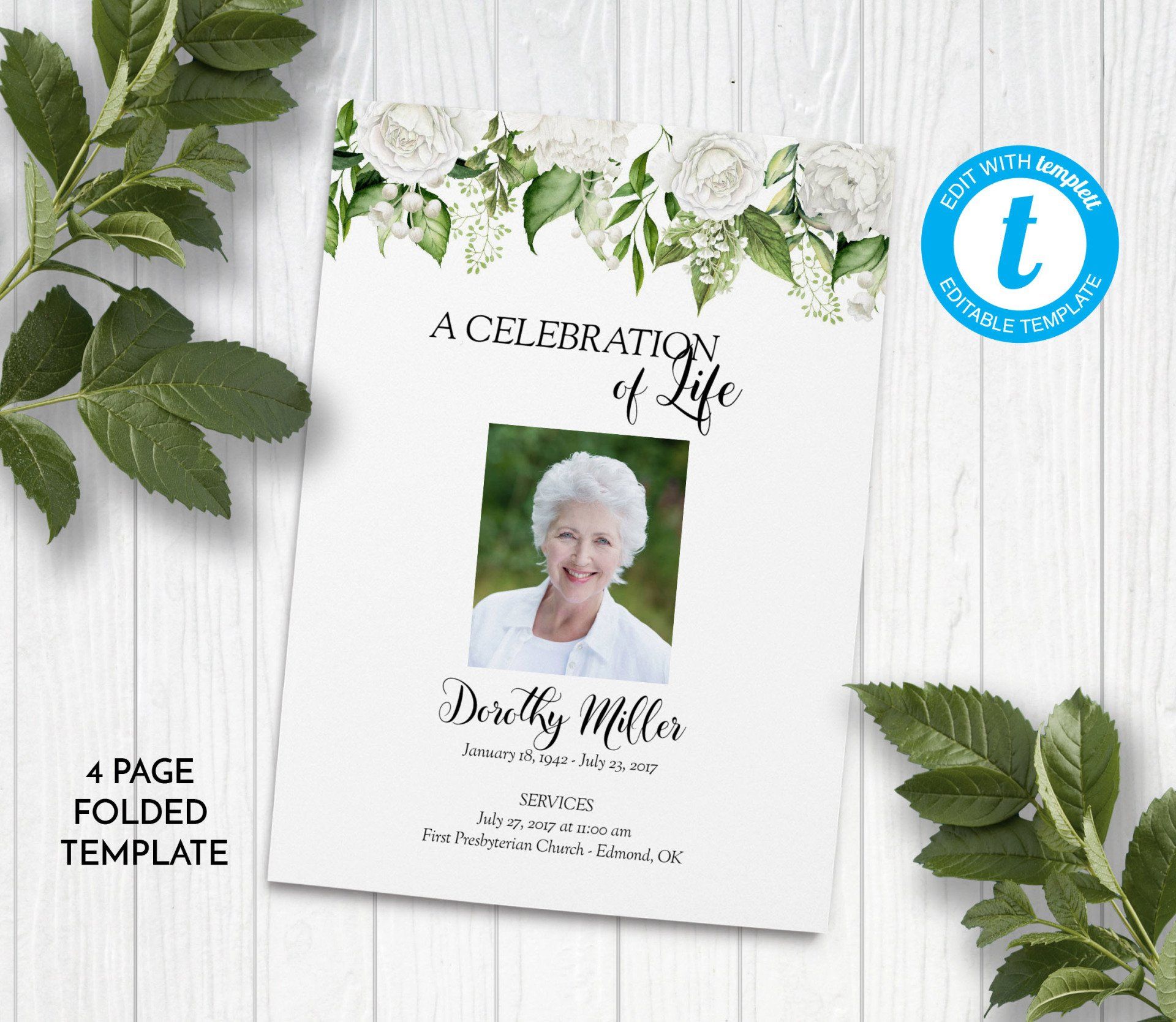 Includes 3 layouts. Design also comes as Memory Keepsake Program with Obituary/Order of Service Insert.
