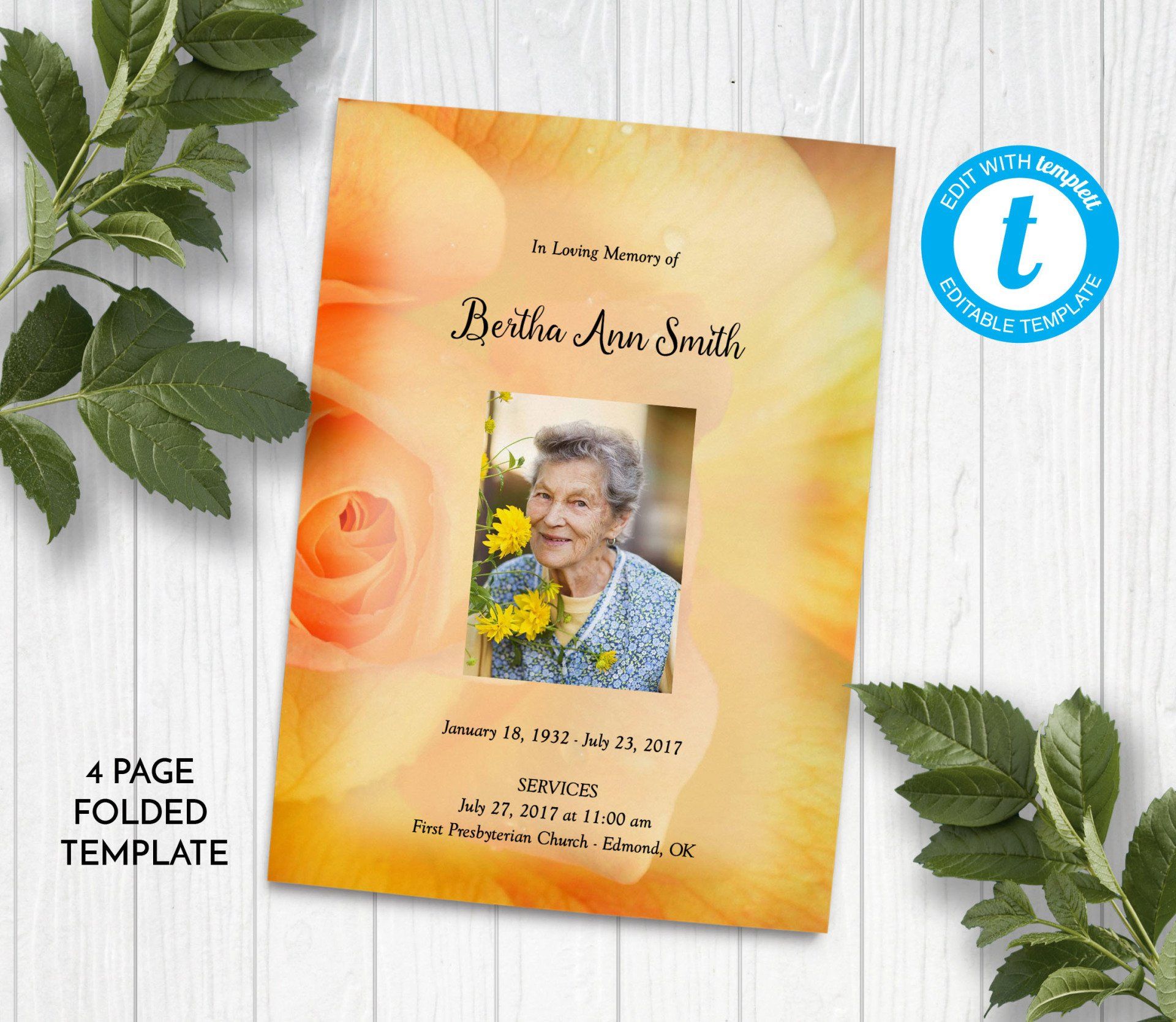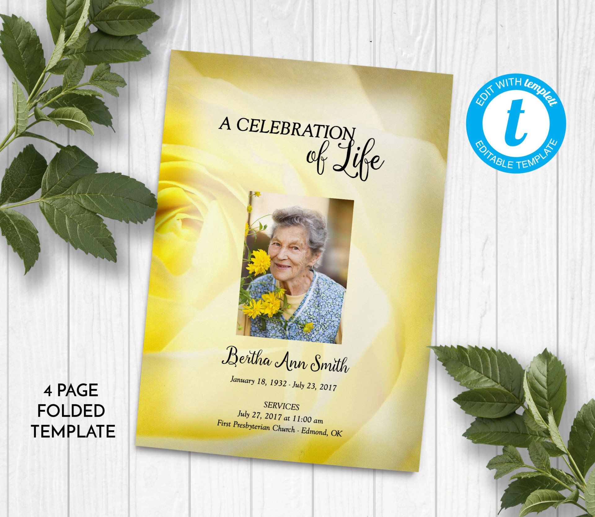 Yellow Rose Funeral Program